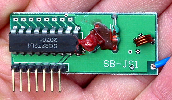 这款接收板上有一个4位的跳线柱,用于切换选择四路遥控信号中的其中一路(例如遥控器按键A/B/C/D中的A键)另外有一个2位的跳线柱,用于切换选择锁存或者非锁存模式。所谓锁存模式就是按下A键,接收板的继电器吸合并保持,只有按下B/C/D中的任意一个按键时,继电器才释放。所谓非锁存模式就是按下A键,接收板的继电器吸合,如果松开A键,接收板的继电器立即释放。 有实践经验的网友会发现,在相同的条件下,采用M4芯片的非锁存接收板的遥控距离要远远小于L4锁存型的遥控距离,有时只有锁存型的一半甚至还不到,并且继电器有吸合不稳定的现象,这是因为在非锁存状态,遥控信号需要每秒同步30次左右,当继电器控制的负载是电机或者是其它容易产生干扰的设备时,设备本身通电后产生的干扰会使遥控信号中断,从而使继电器工作在一种跳跃的不稳定状态。 这里我们采用一种脉冲展宽抗干扰技术方法,仍然采用L4的解码芯片,通过将17脚输出的信号做一个0.5秒左右的延时展宽,使遥控输出信号更加稳定,站长在开发遥控大门的产品时就是采用这种办法,使遥控更远、更稳定,实践证明0.5秒的滞后延时不会影响操作。 接收板1J-T4 多用途单继电器遥控接收板(接收板25元一个,不含外壳) 通过将芯片换成2272 T4芯片并且选择锁存模式,可以使接收板工作在触发翻转模式,也就是按一下遥控器A键,接收板的继电器吸合,再按一下遥控器A键,接收板的继电器释放。应用:用一个200米四键遥控器+4个触发翻转单继电器接收板,4接收板分别切换到A/B/C/D四个通道,这时用一个遥控器的A/B/C/D就可以分别控制四个地点的接收板,例如家庭多路(4路及以下)灯具、电器控制。(注意:必须切换到锁存模式才能正常工作)