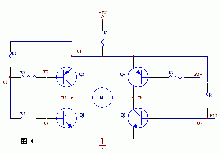 如下图所示:这个电路中四个三极管都采用PNP型,这样,导通的驱动是控制引脚输出低电平,而51的低电平时,是通过MOSFET接地,所以下拉能力极强。