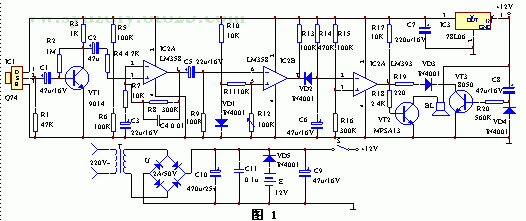 IC1采用进口器件Q74,波长为9-10um。IC2采用运放LM358,具有高增益、低功耗。IC3、IC4为双电压比较器LM393,低功耗、低失调电压。其中C2、C5一定要用漏电极小的钽电容,否则调试会受到影响。R12是调整灵敏度的关键元件,应选用线性高精度密封型。